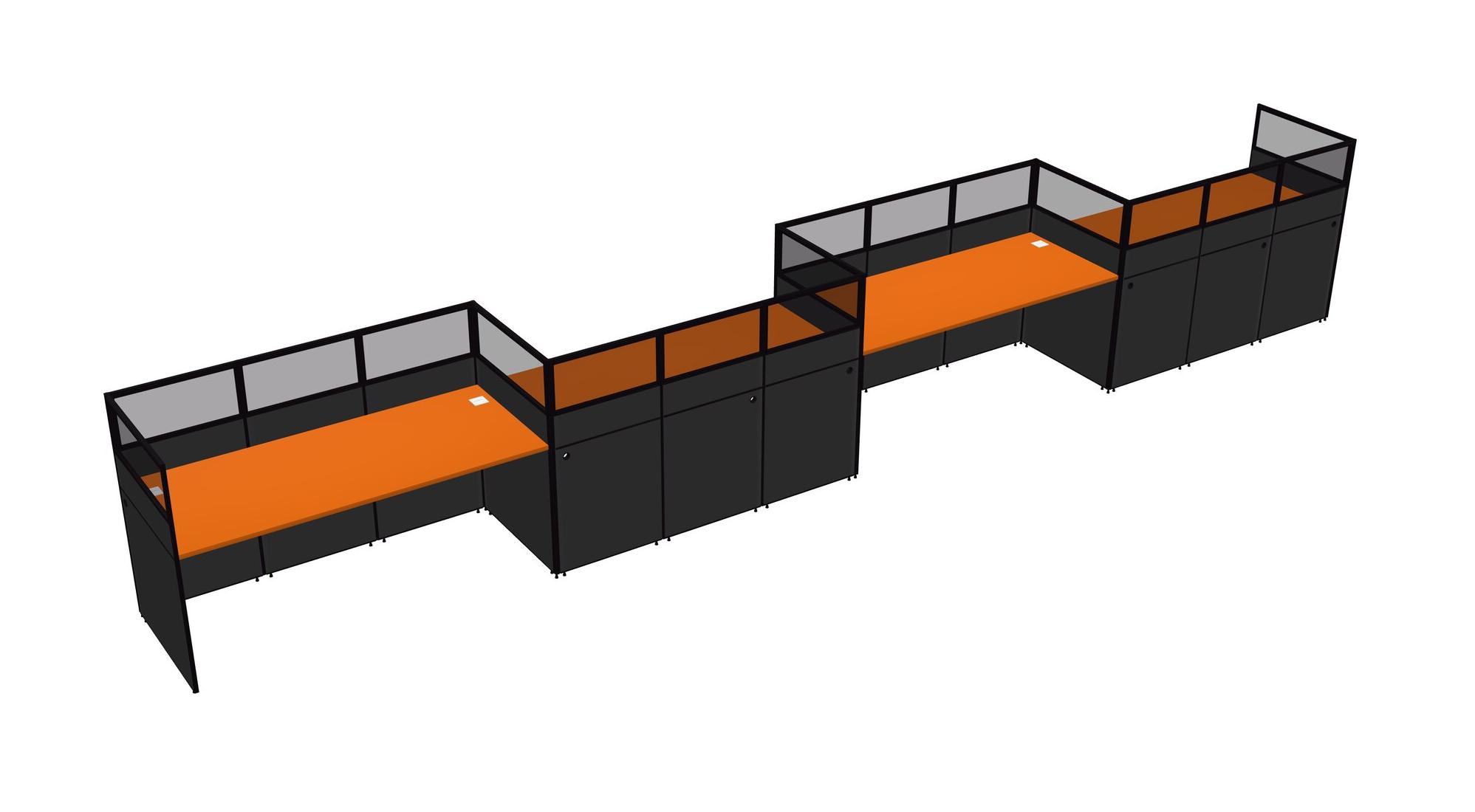 Orange Rectangular Cubicle Workstations For 4 - Zigzag Formation