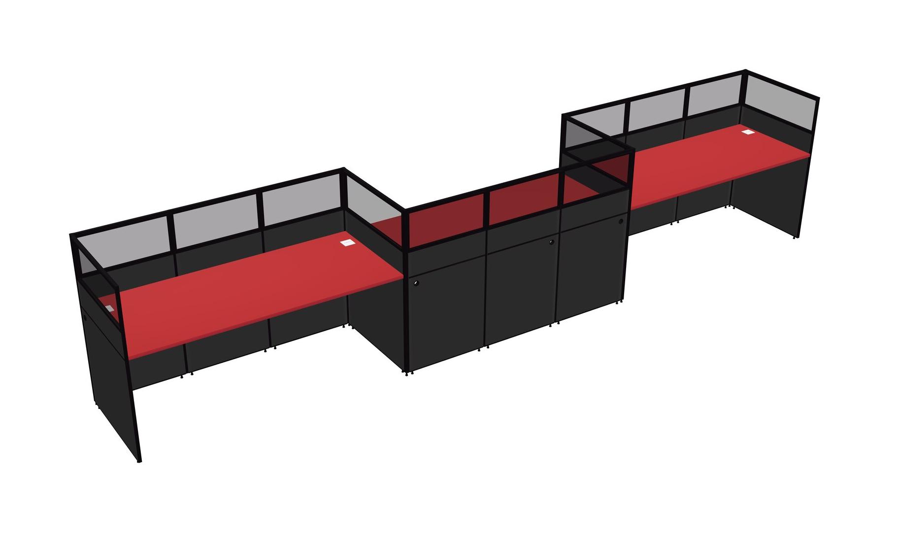 Prism Red Rectangular Cubicle Workstations For 3 - Zigzag Formation