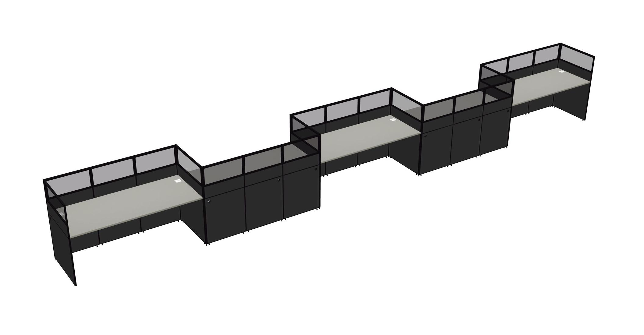 Grey Shadows Rectangular Cubicle Workstations For 5 - Zigzag Formation