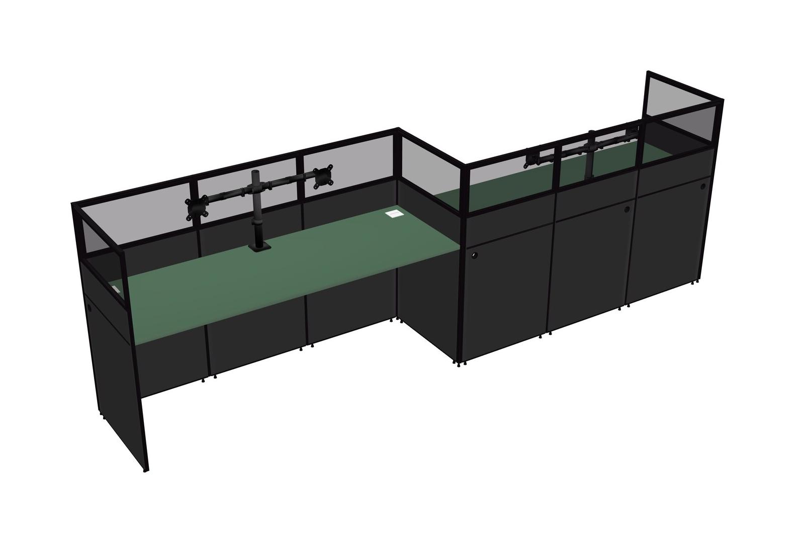 Green Rectangular Cubicle Workstations For 2 - Zigzag Formation