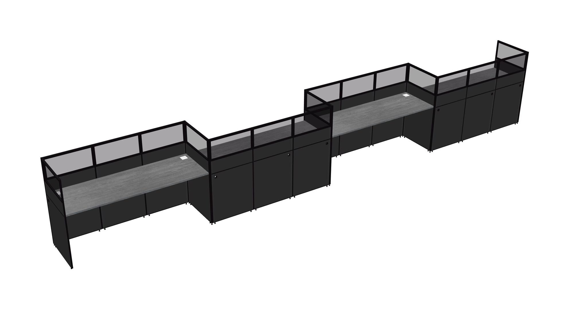Grey Rectangular Cubicle Workstations For 4 - Zigzag Formation