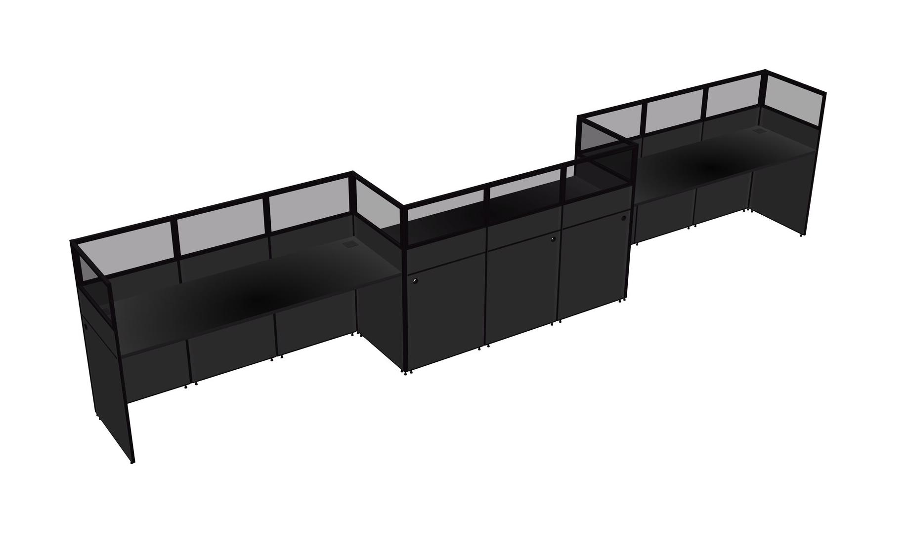 Black Rectangular Cubicle Workstations For 3 - Zigzag Formation