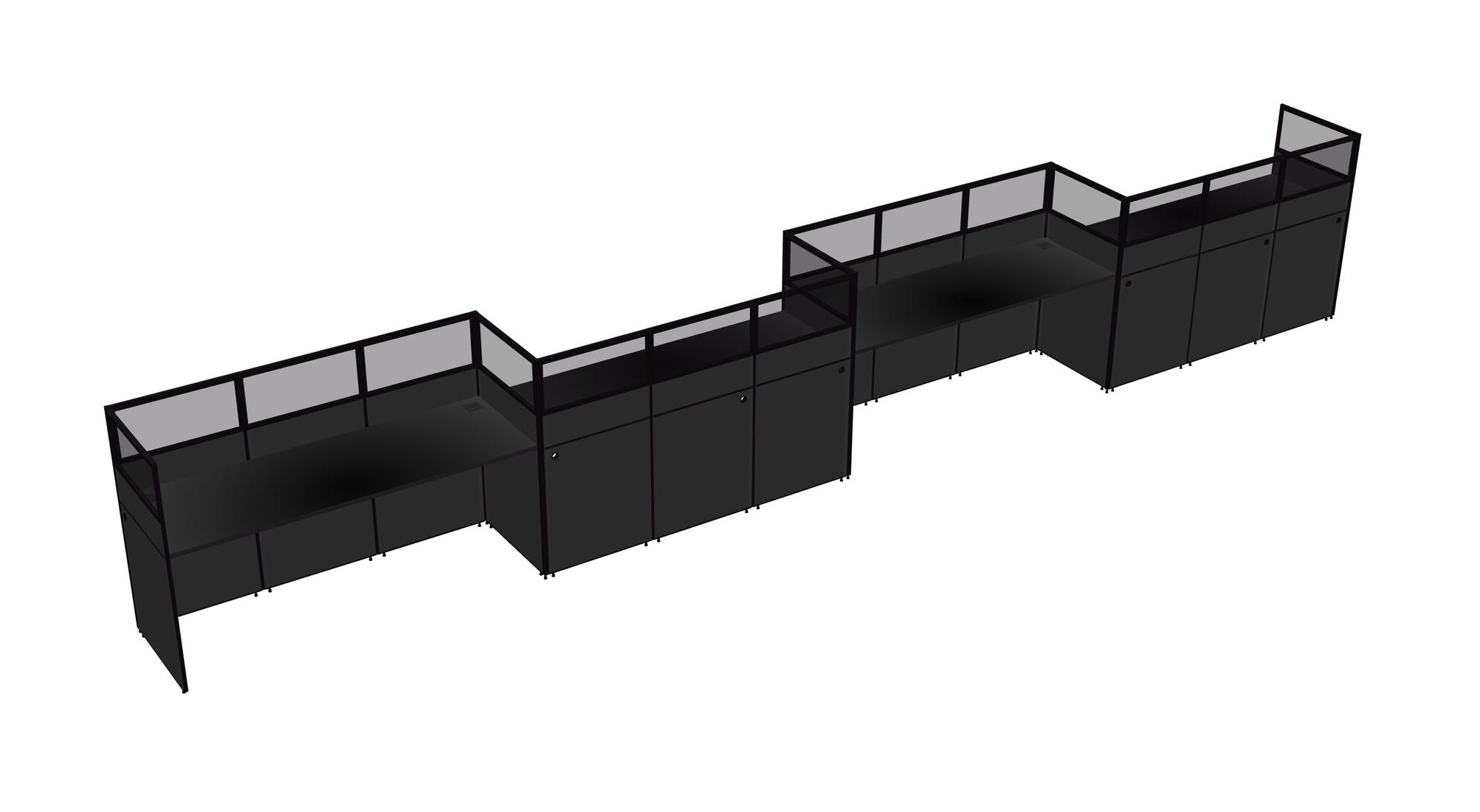 Black Rectangular Cubicle Workstations For 4 - Zigzag Formation