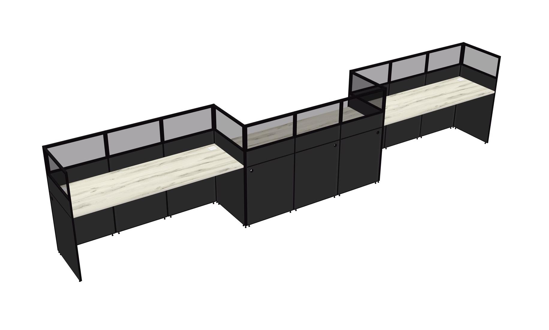 Heinne Holz Rectangular Cubicle Workstations For 3 - Zigzag Formation