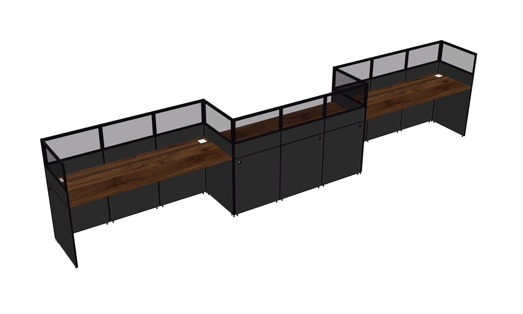 Columbia Walnut Rectangular Cubicle Workstations For 3 - Zigzag Formation