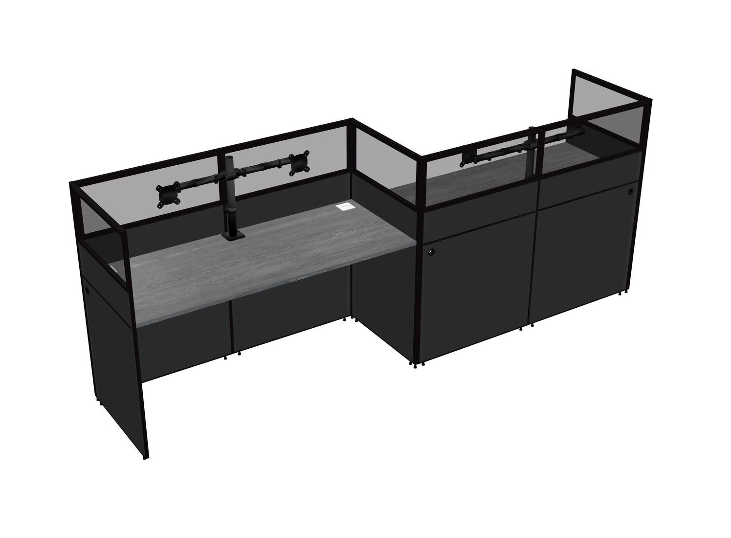 Grey Rectangular Cubicle Workstations For 2 - Zigzag Formation