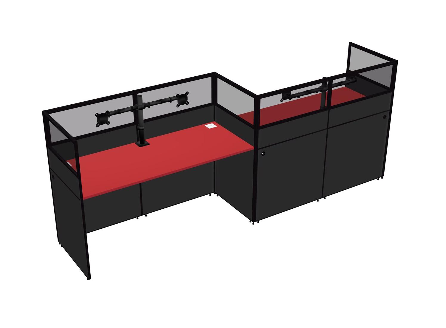 Prism Red Rectangular Cubicle Workstations For 2 - Zigzag Formation