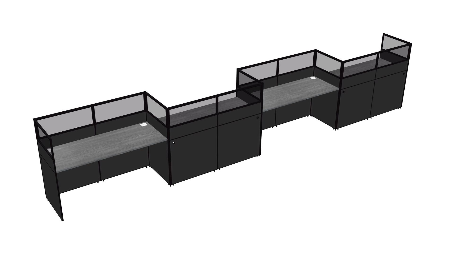 Grey Rectangular Cubicle Workstations For 4 - Zigzag Formation