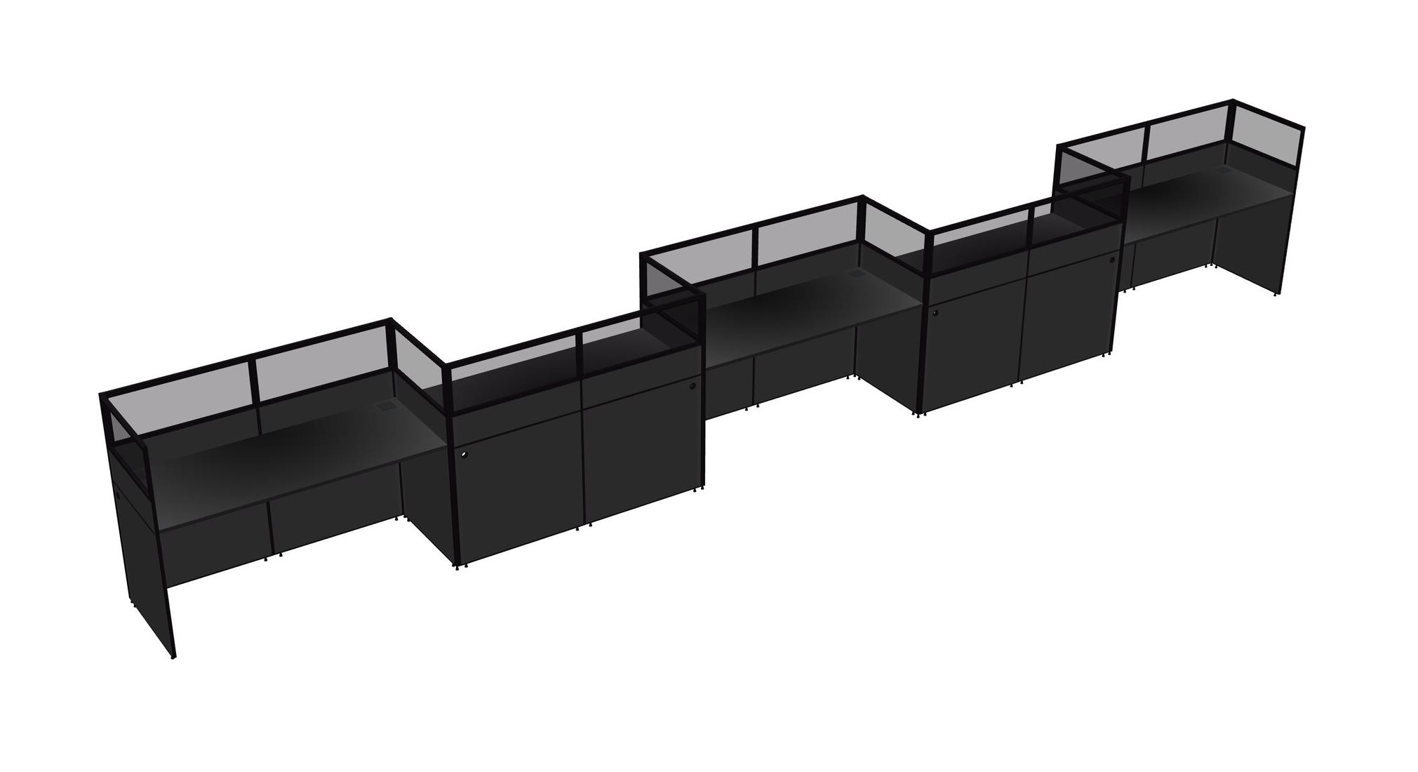 Black Rectangular Cubicle Workstations For 5 - Zigzag Formation
