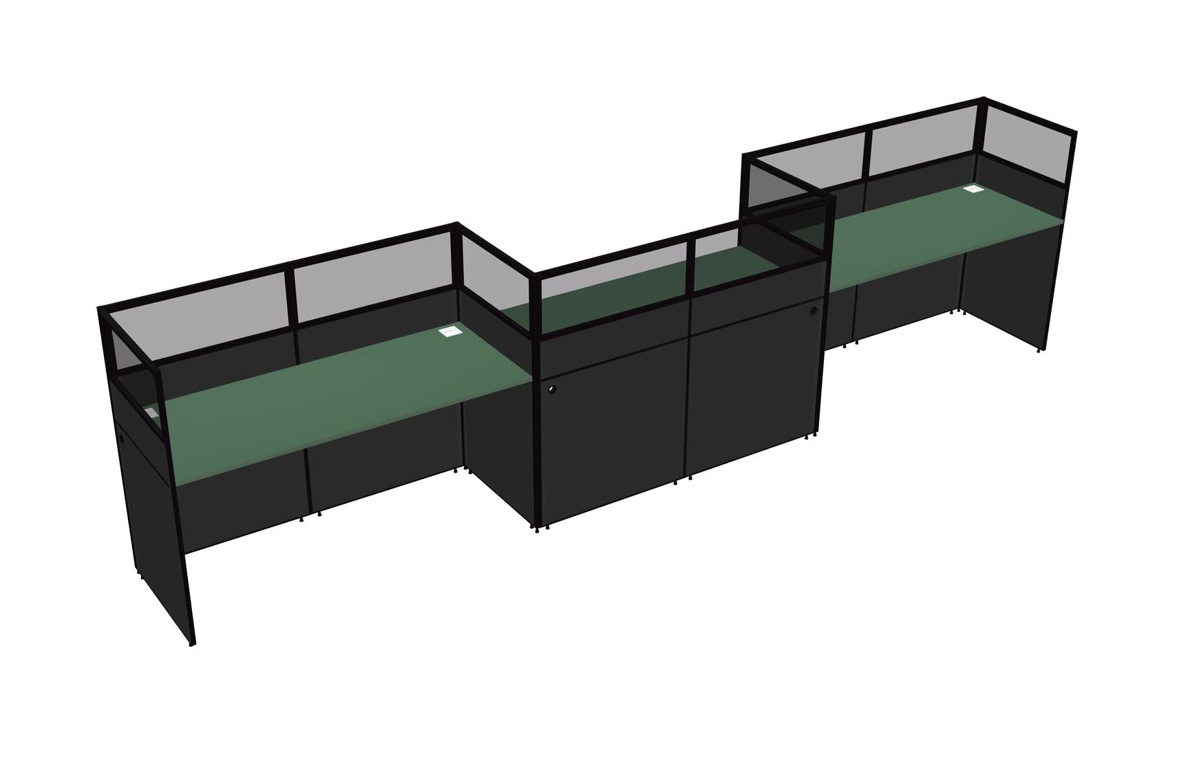 Green Rectangular Cubicle Workstations For 3 - Zigzag Formation