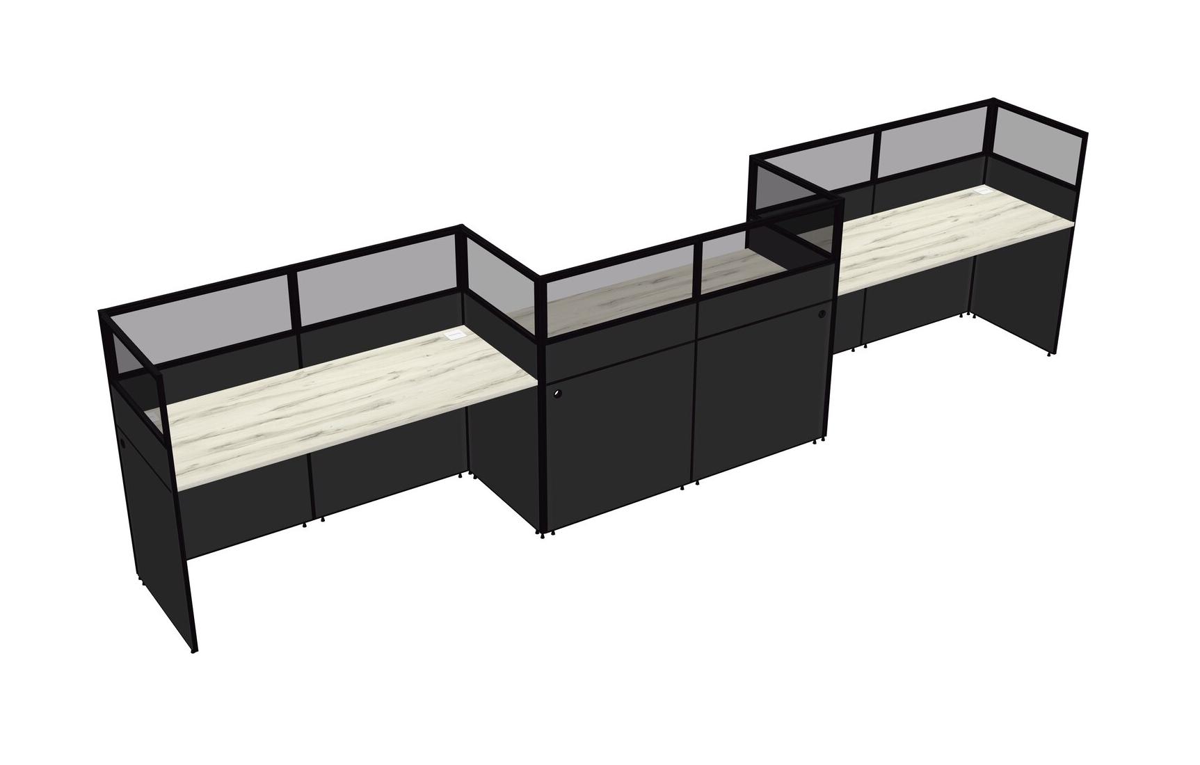 Heinne Holz Rectangular Cubicle Workstations For 3 - Zigzag Formation