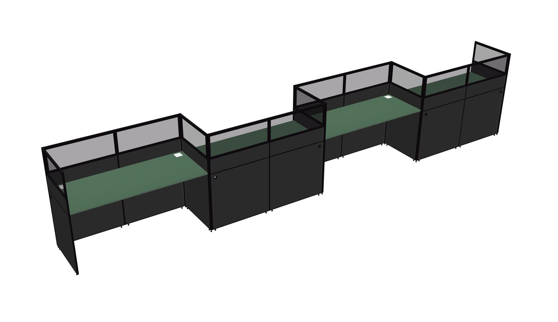 Green Rectangular Cubicle Workstations For 4 - Zigzag Formation