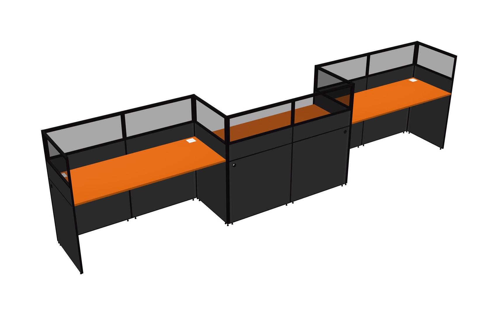 Orange Rectangular Cubicle Workstations For 3 - Zigzag Formation