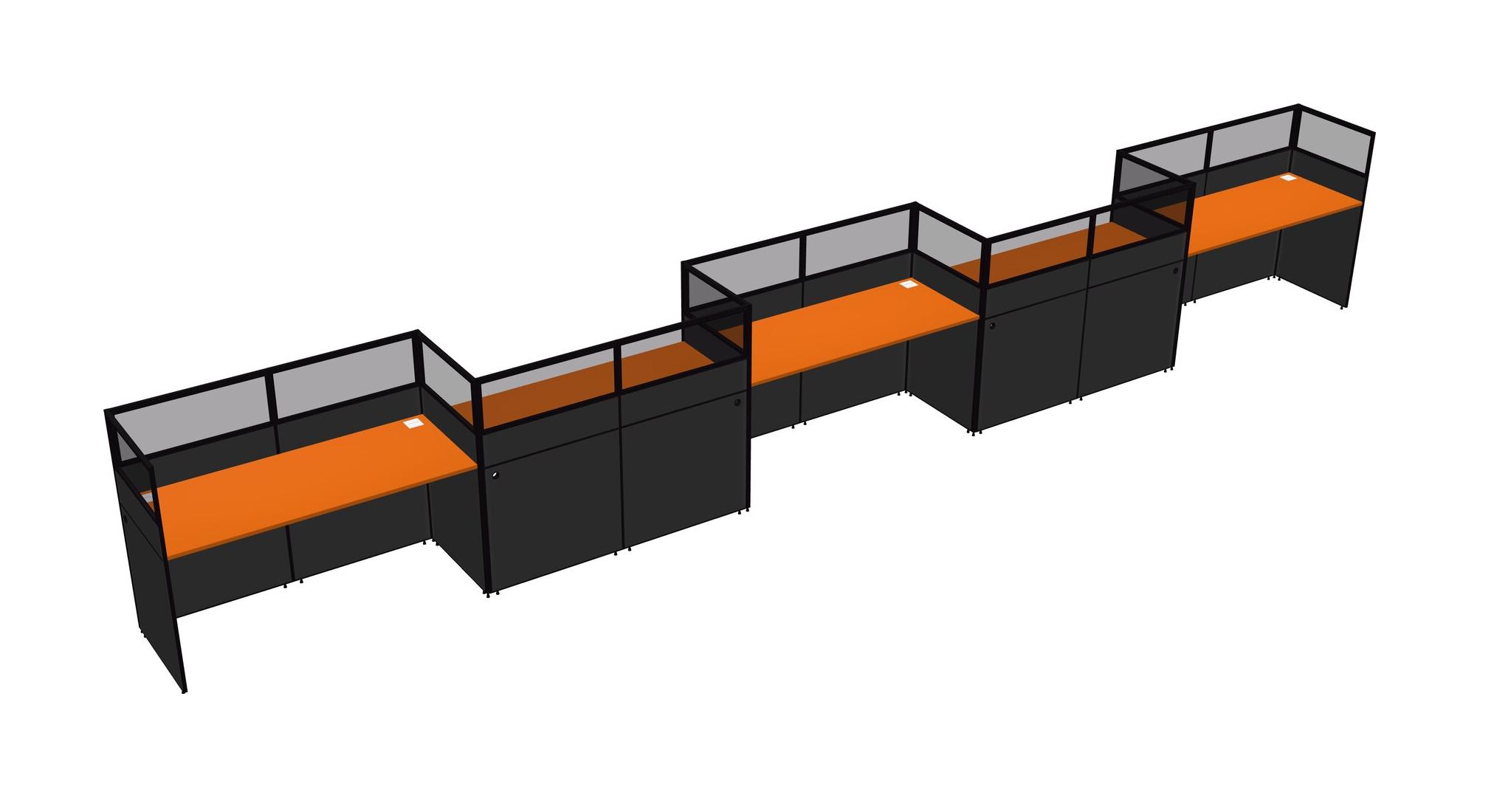 Orange Rectangular Cubicle Workstations For 5 - Zigzag Formation