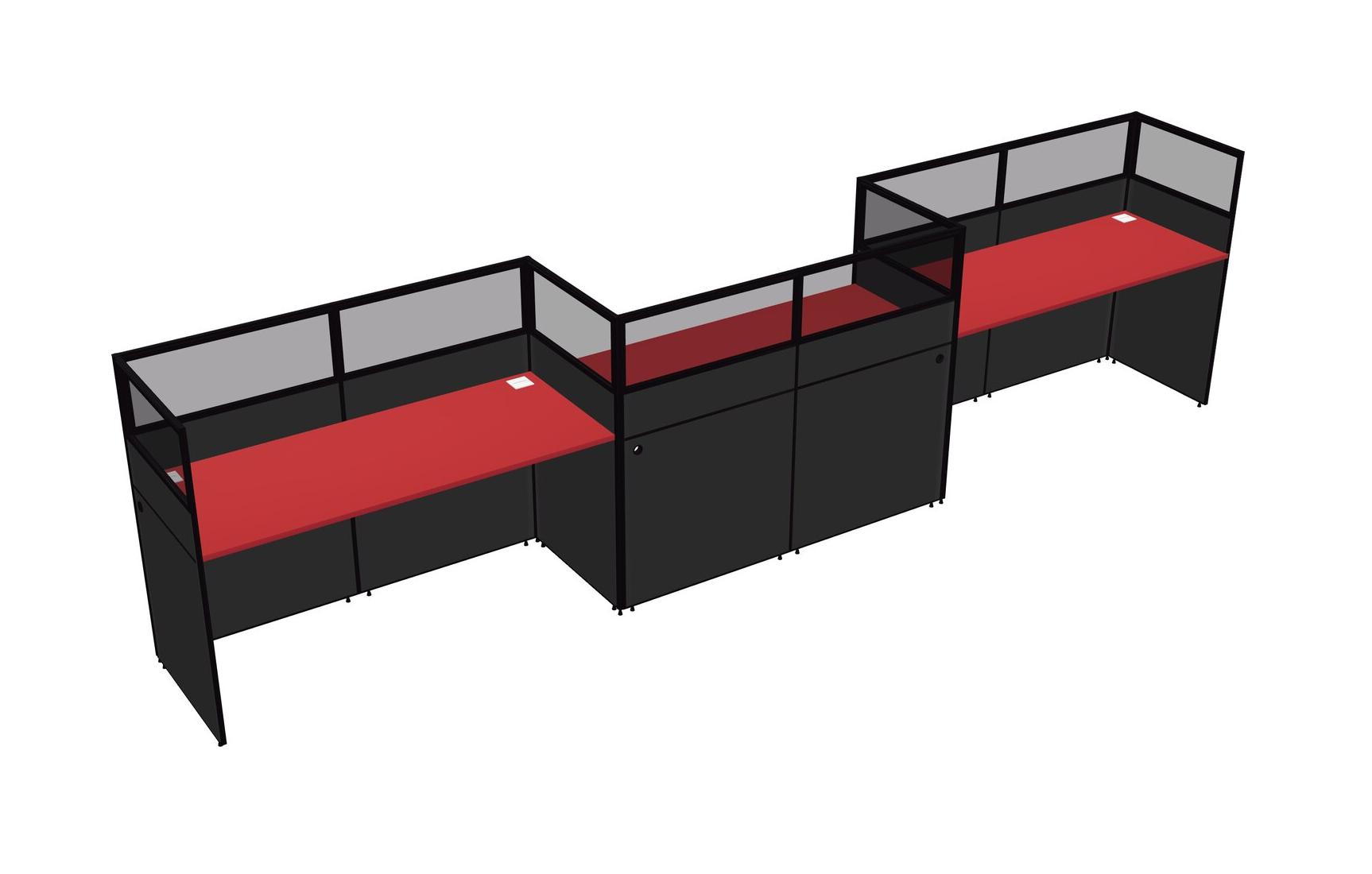 Prism Red Rectangular Cubicle Workstations For 3 - Zigzag Formation