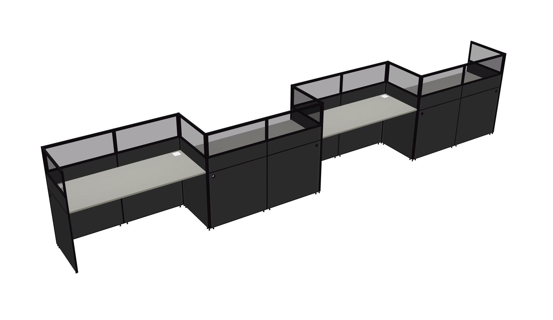 Grey Shadows Rectangular Cubicle Workstations For 4 - Zigzag Formation