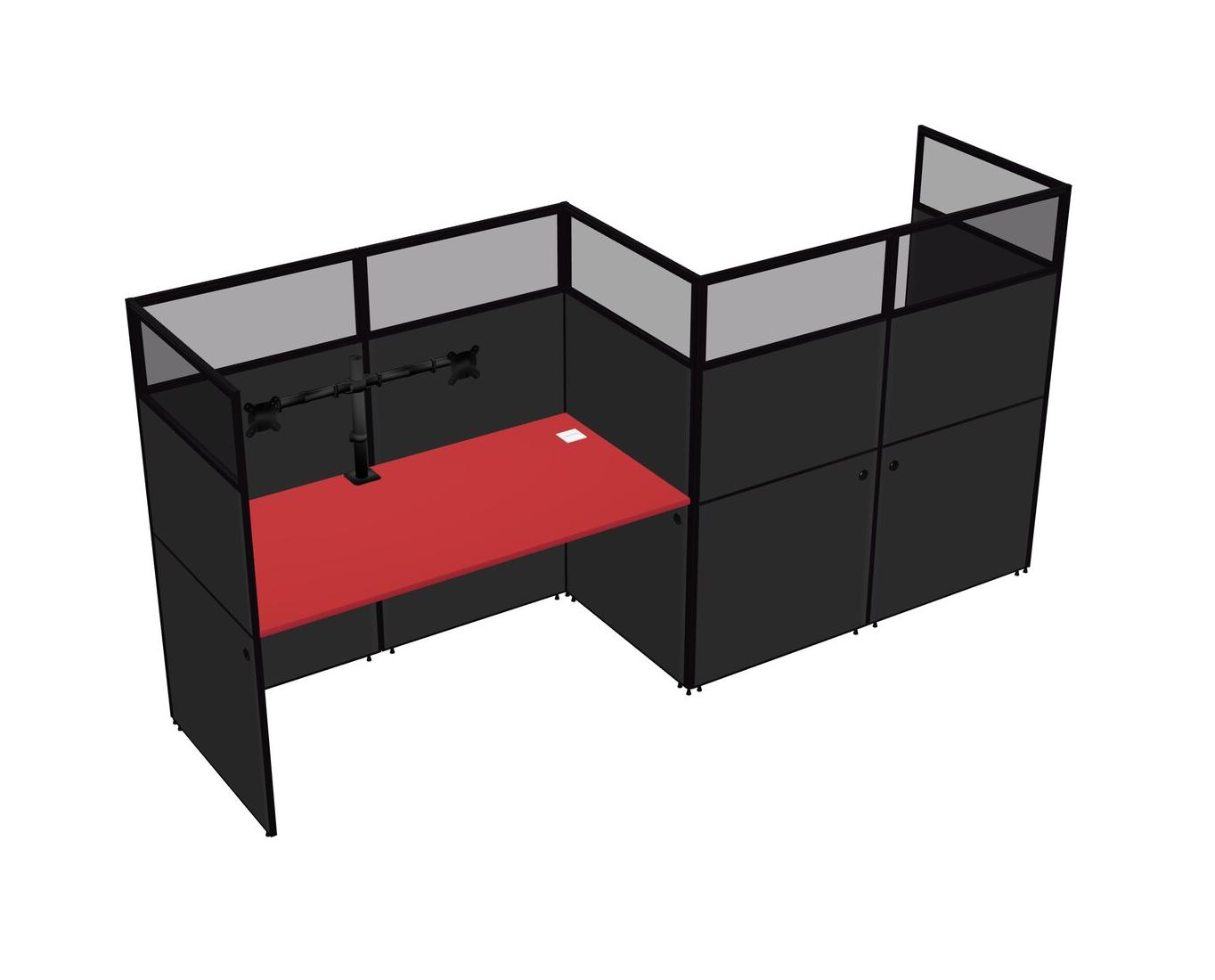 Prism Red Rectangular Cubicle Workstations For 2 - Zigzag Formation