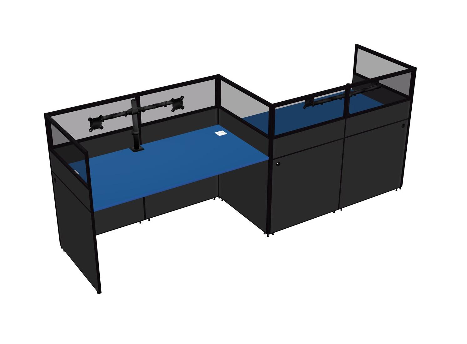 Prism Blue Rectangular Cubicle Workstations For 2 - Zigzag Formation