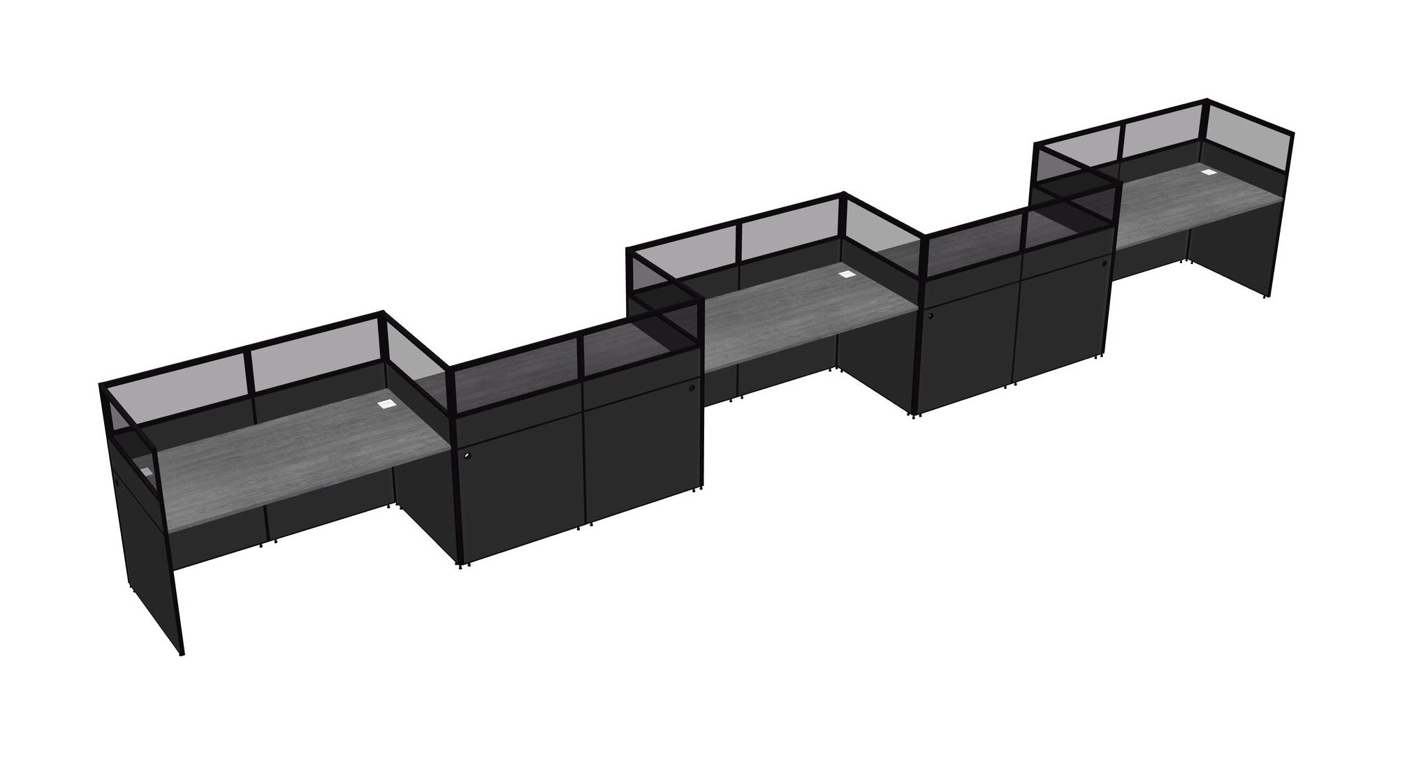 Grey Rectangular Cubicle Workstations For 5 - Zigzag Formation