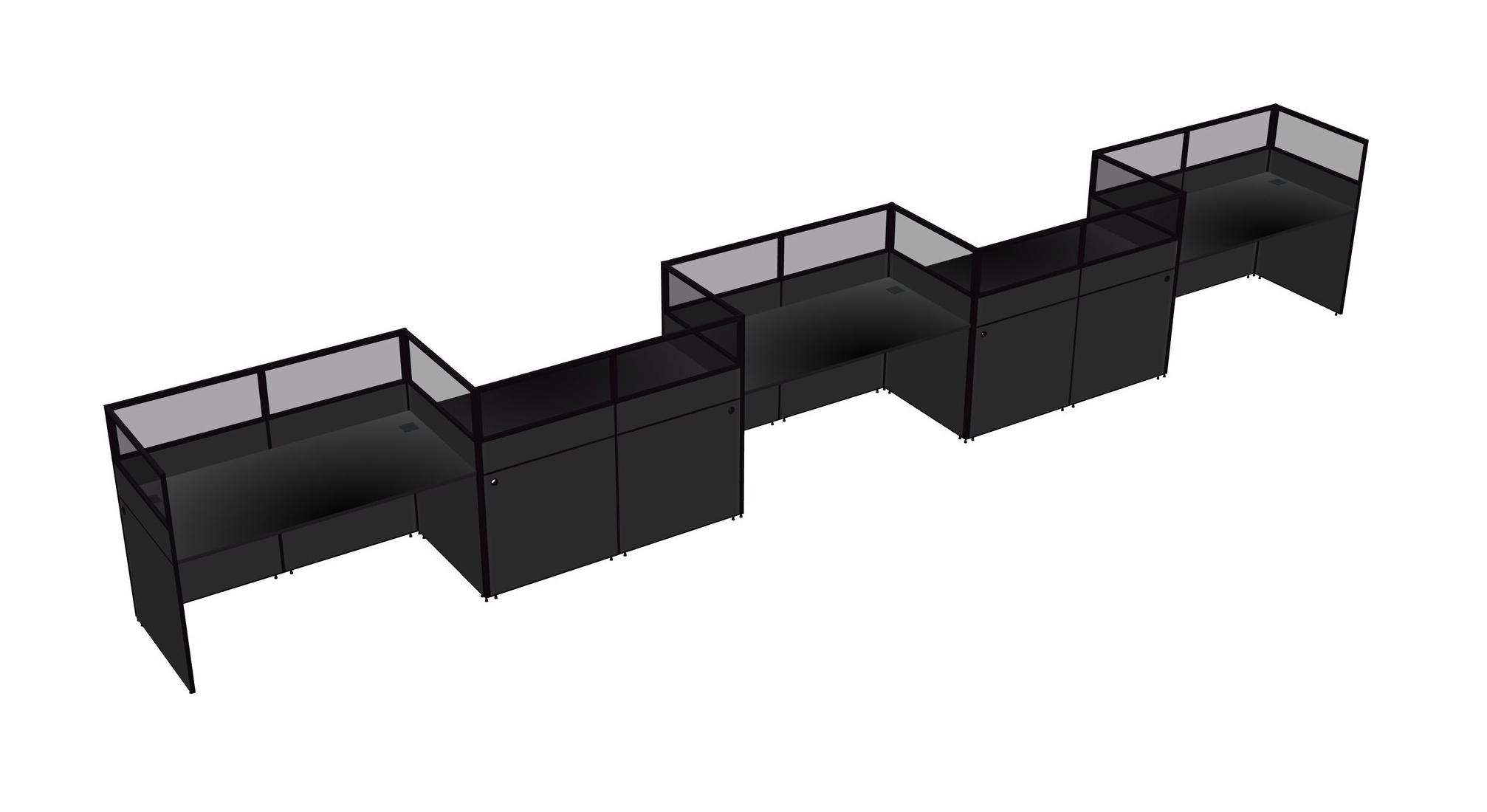 Black Rectangular Cubicle Workstations For 5 - Zigzag Formation