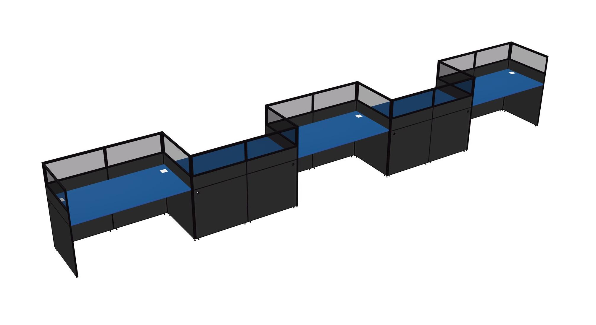 Prism Blue Rectangular Cubicle Workstations For 5 - Zigzag Formation