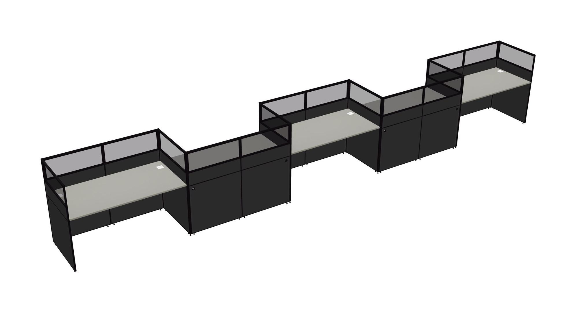 Grey Shadows Rectangular Cubicle Workstations For 5 - Zigzag Formation
