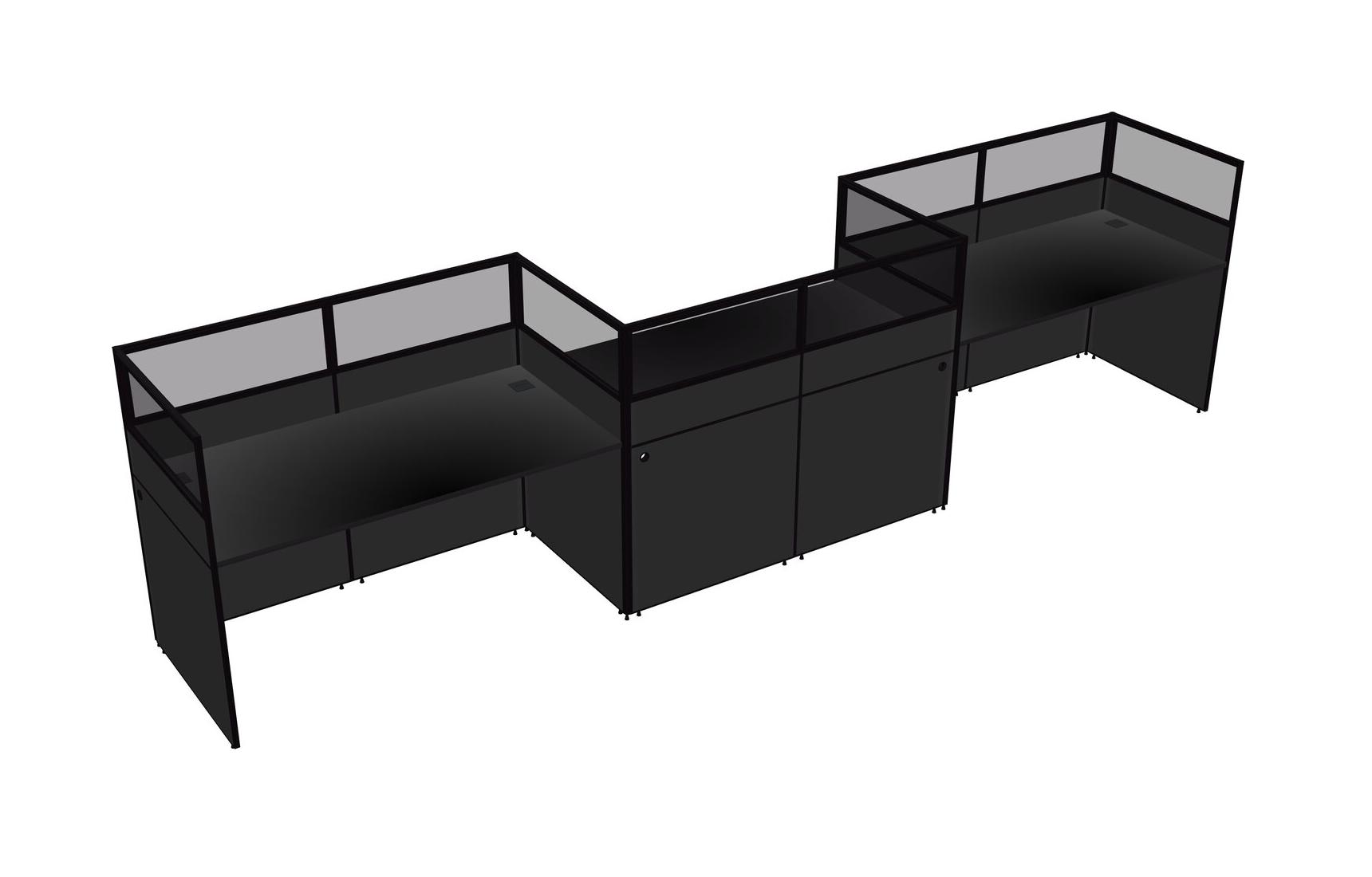 Black Rectangular Cubicle Workstations For 3 - Zigzag Formation