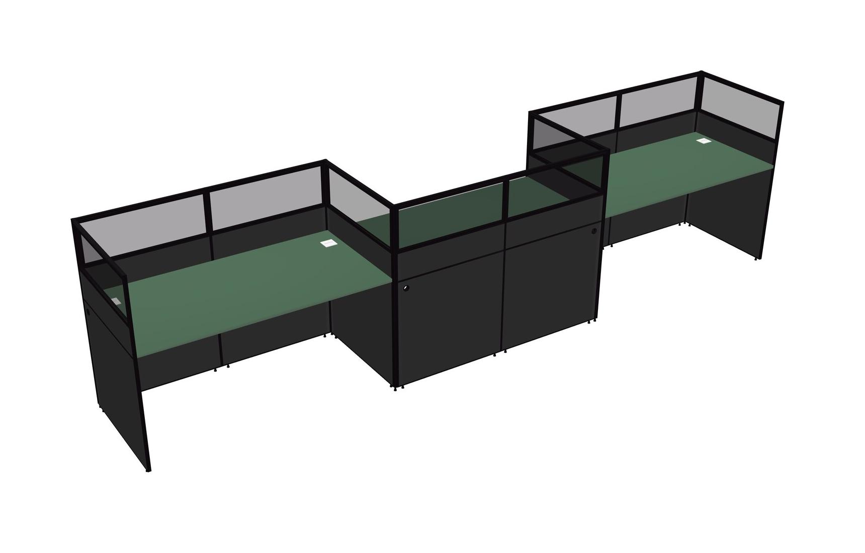 Green Rectangular Cubicle Workstations For 3 - Zigzag Formation