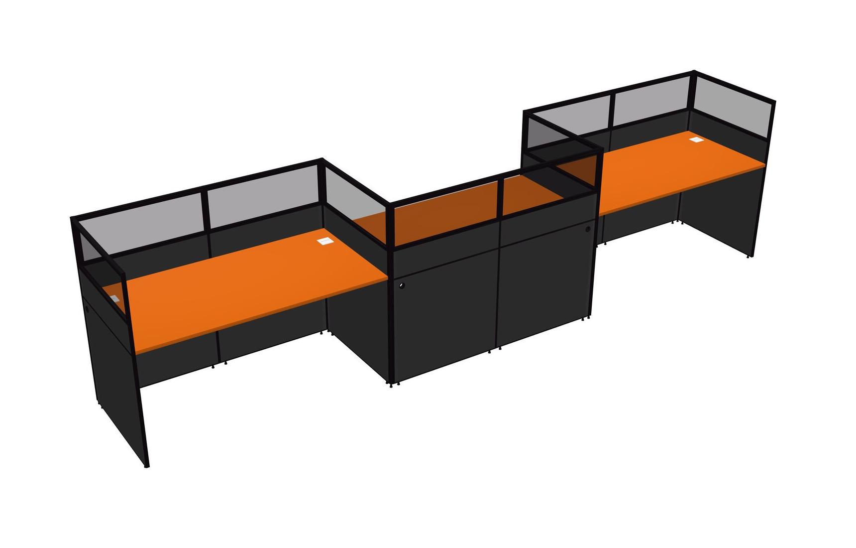 Orange Rectangular Cubicle Workstations For 3 - Zigzag Formation