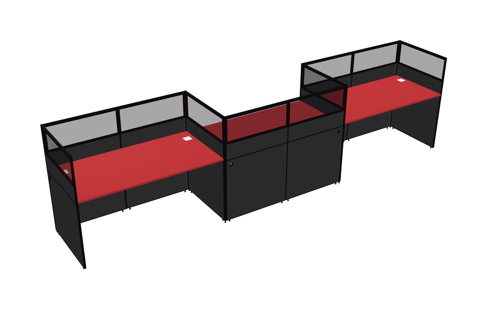 Prism Red Rectangular Cubicle Workstations For 3 - Zigzag Formation