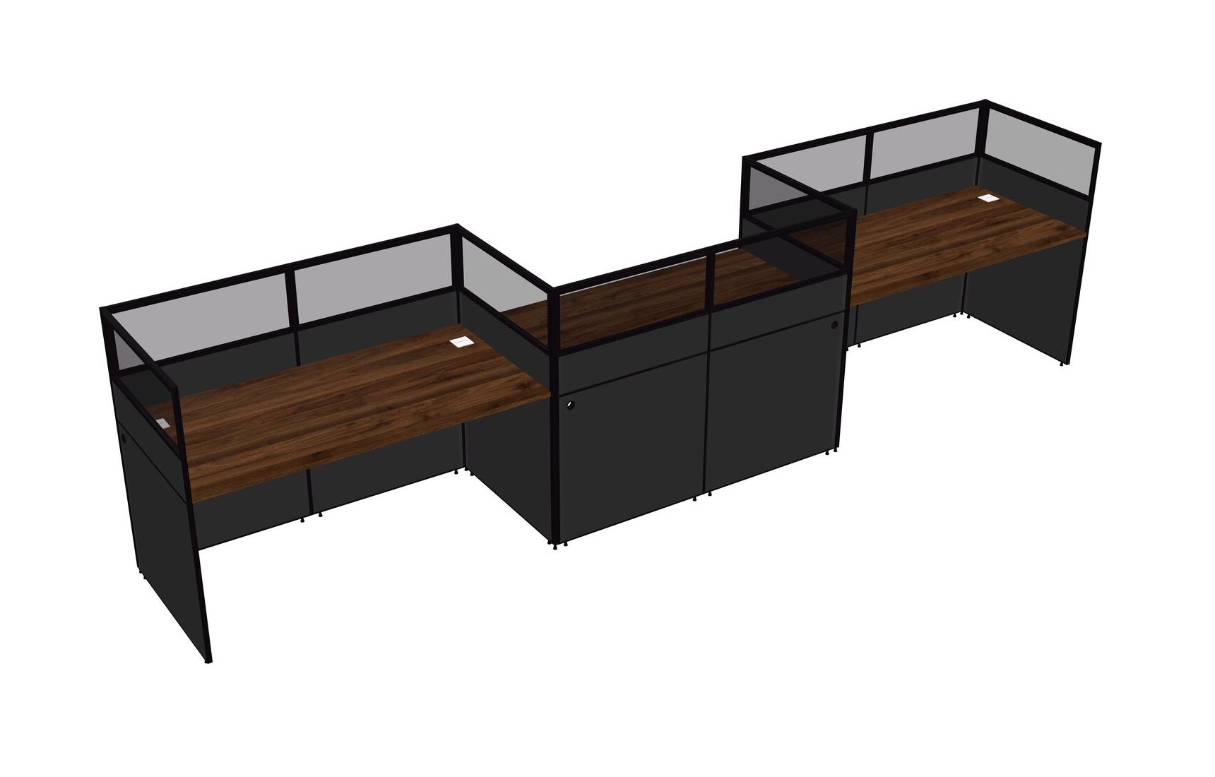 Columbia Walnut Rectangular Cubicle Workstations For 3 - Zigzag Formation