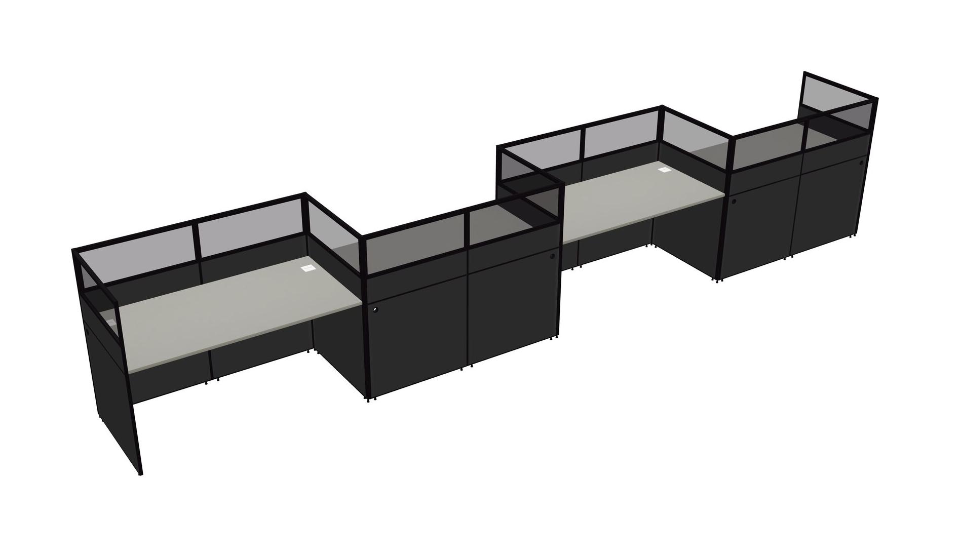 Grey Shadows Rectangular Cubicle Workstations For 4 - Zigzag Formation