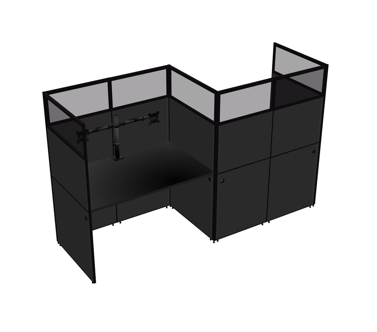 Black Rectangular Cubicle Workstations For 2 - Zigzag Formation