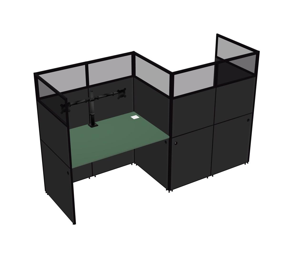 Green Rectangular Cubicle Workstations For 2 - Zigzag Formation