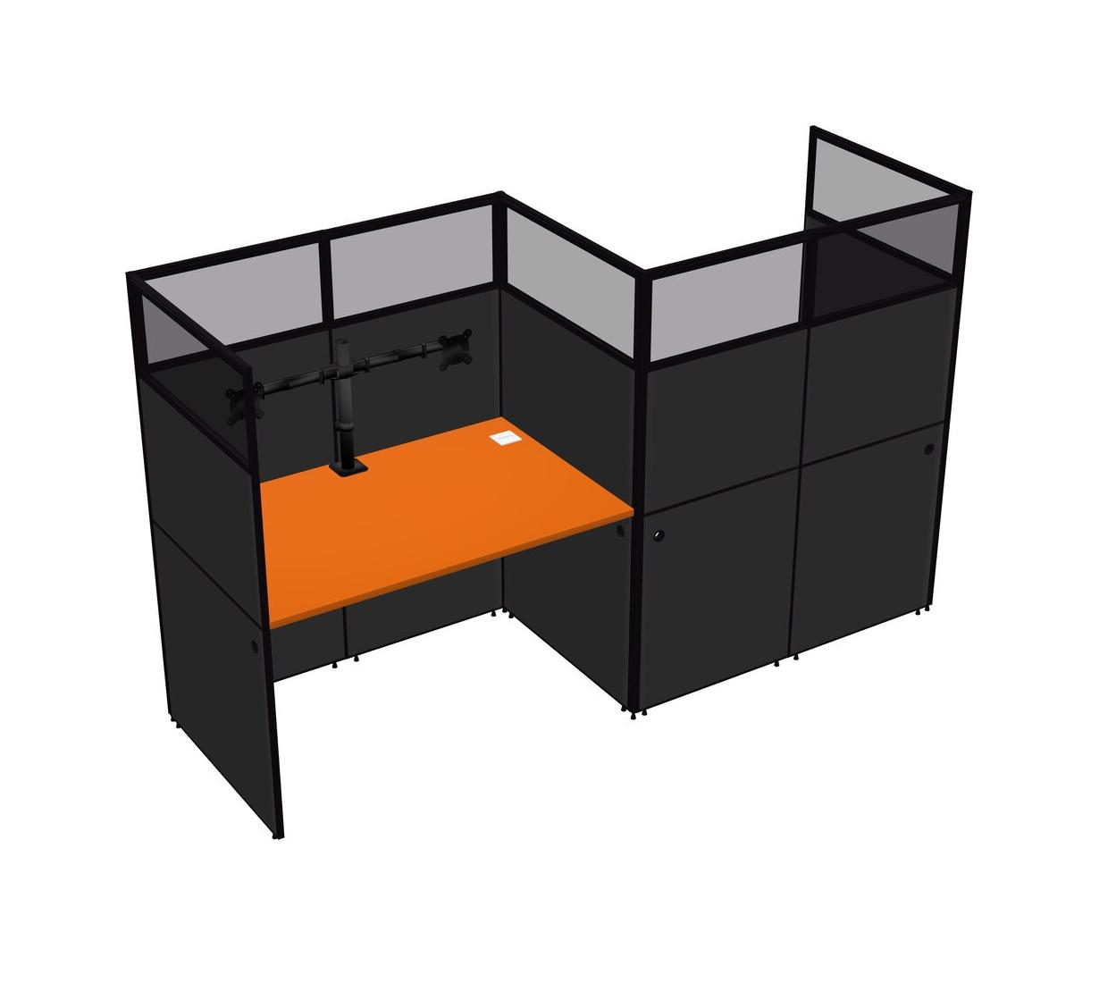 Orange Rectangular Cubicle Workstations For 2 - Zigzag Formation