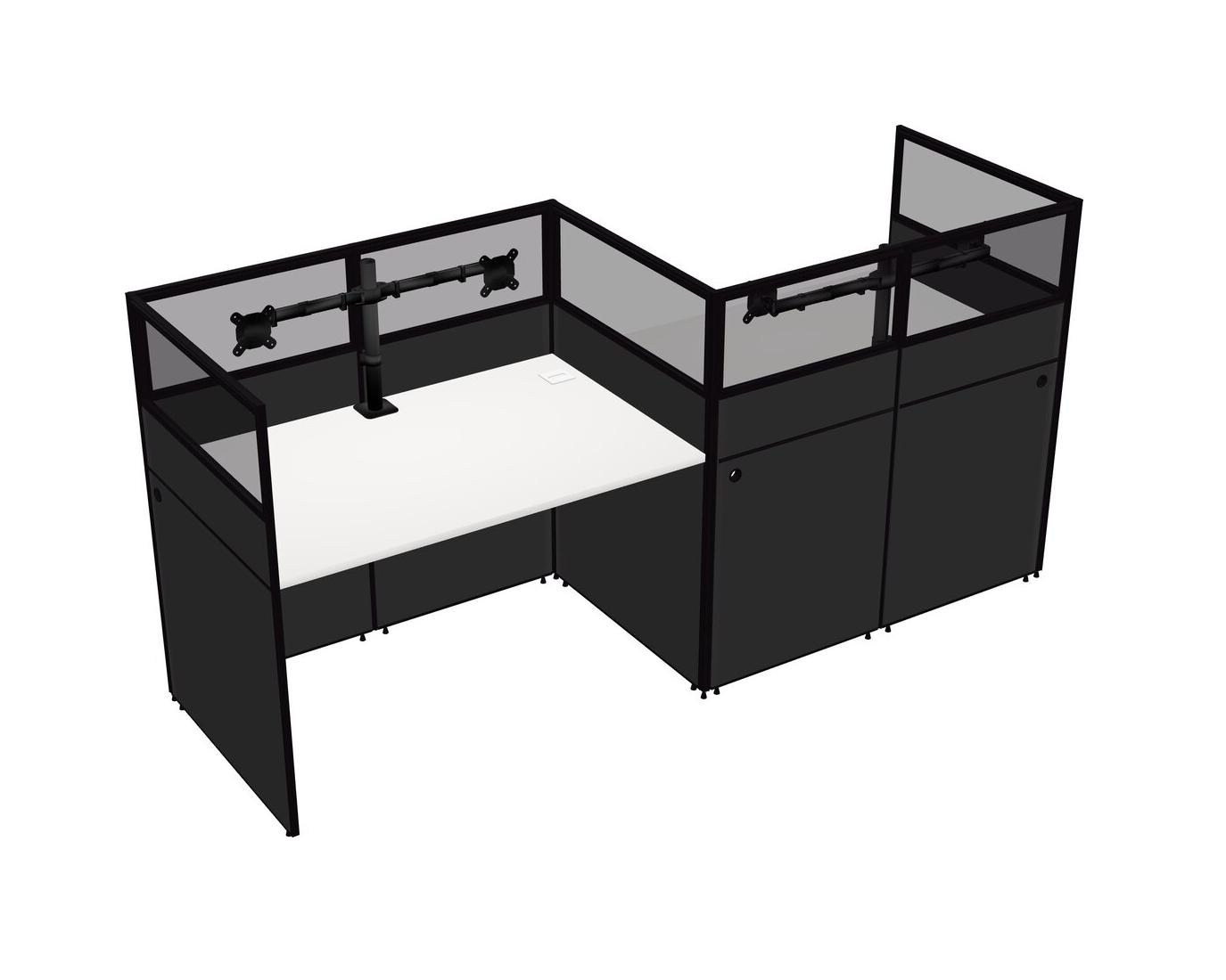 White Rectangular Cubicle Workstations For 2 - Zigzag Formation