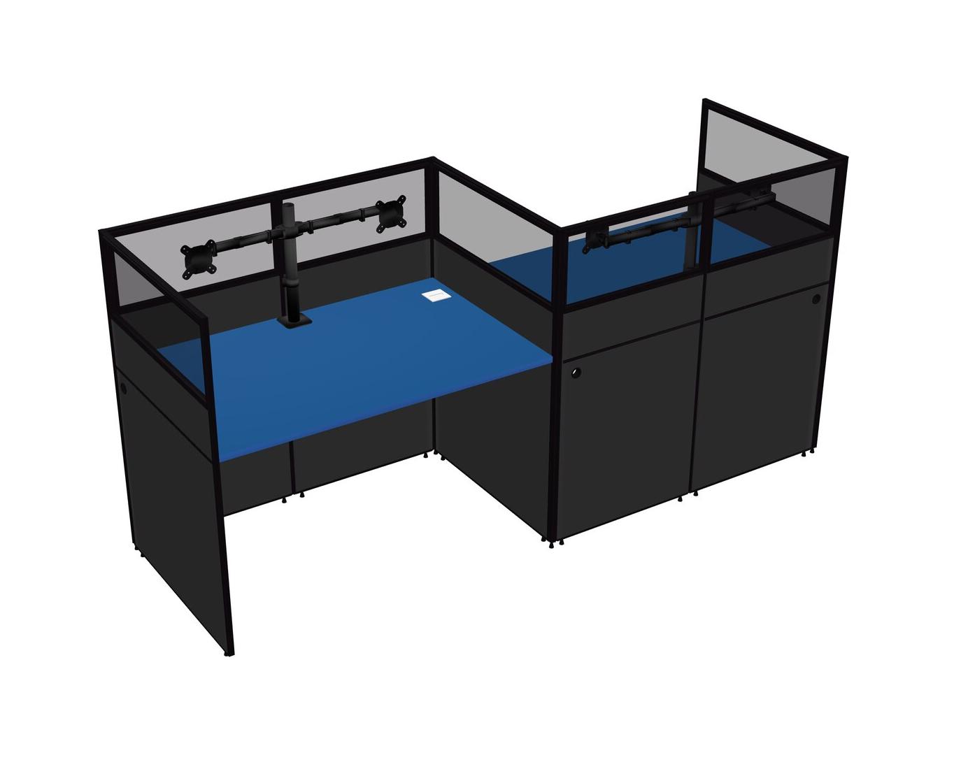 Prism Blue Rectangular Cubicle Workstations For 2 - Zigzag Formation
