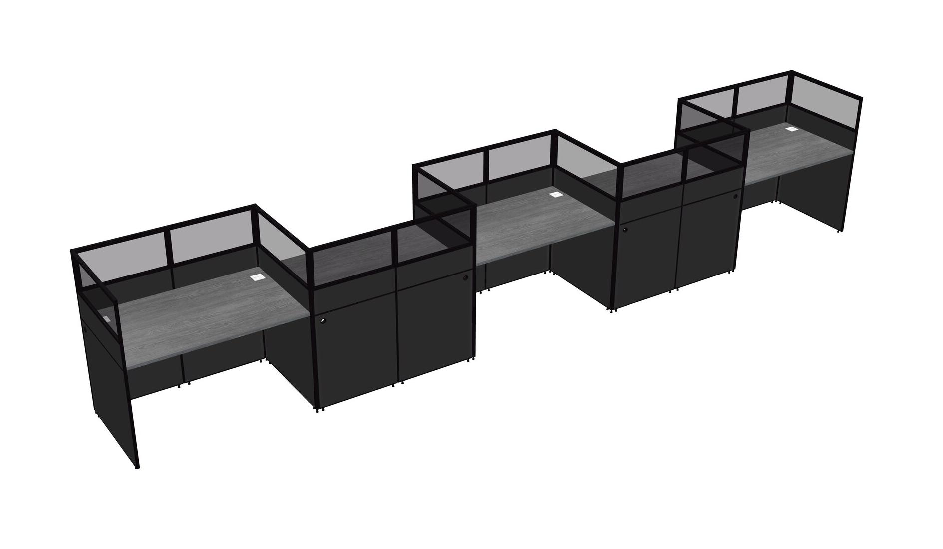 Grey Rectangular Cubicle Workstations For 5 - Zigzag Formation