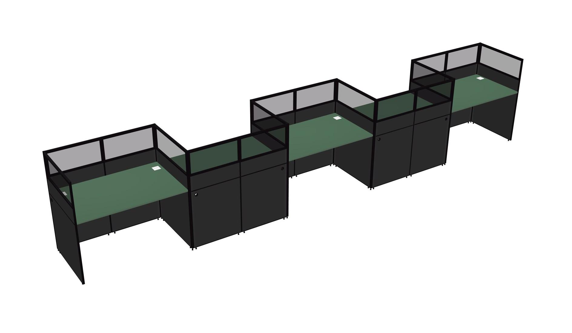 Green Rectangular Cubicle Workstations For 5 - Zigzag Formation