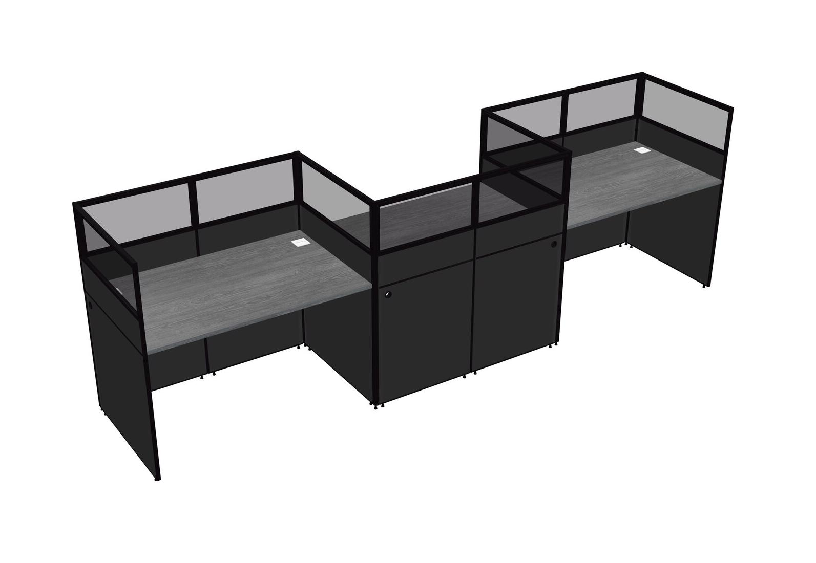 Grey Rectangular Cubicle Workstations For 3 - Zigzag Formation