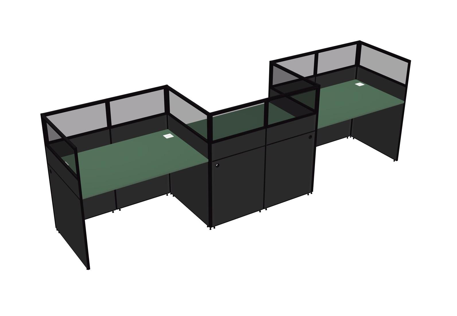 Green Rectangular Cubicle Workstations For 3 - Zigzag Formation