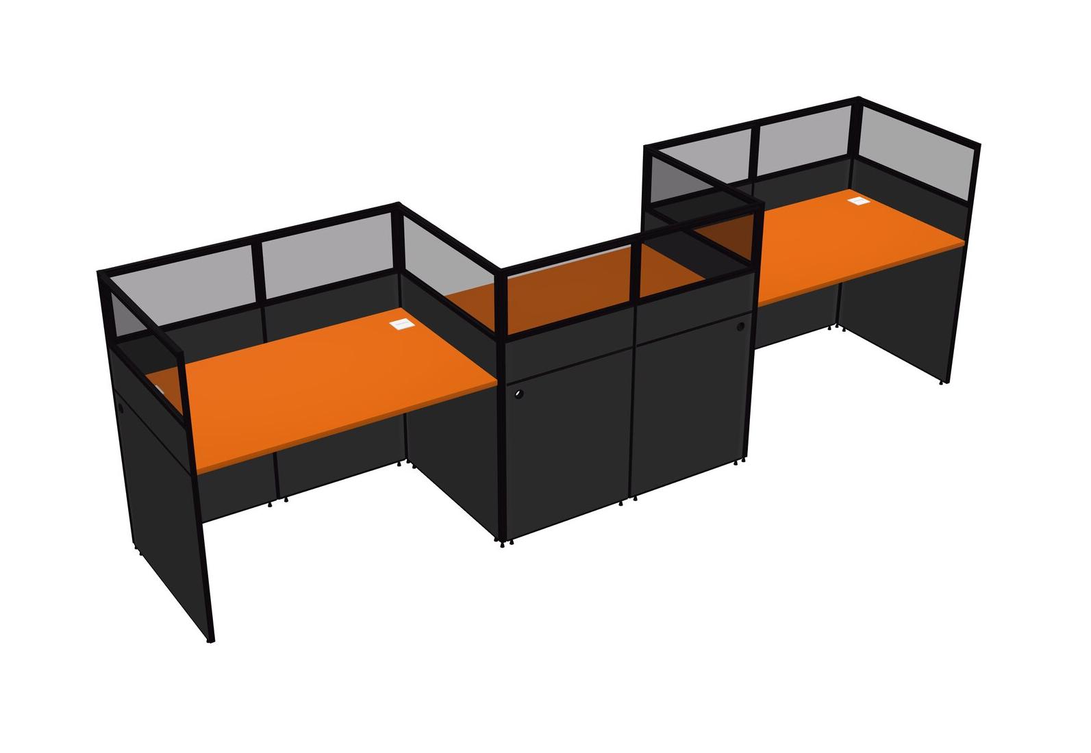Orange Rectangular Cubicle Workstations For 3 - Zigzag Formation