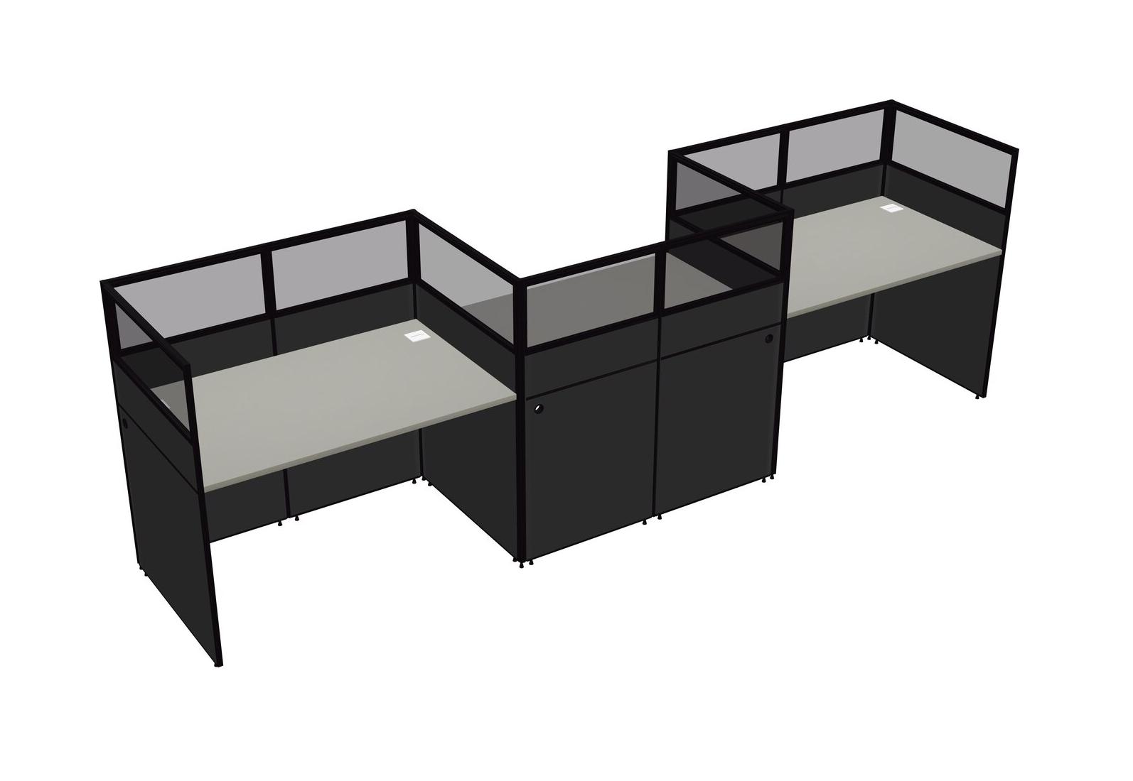 Grey Shadows Rectangular Cubicle Workstations For 3 - Zigzag Formation