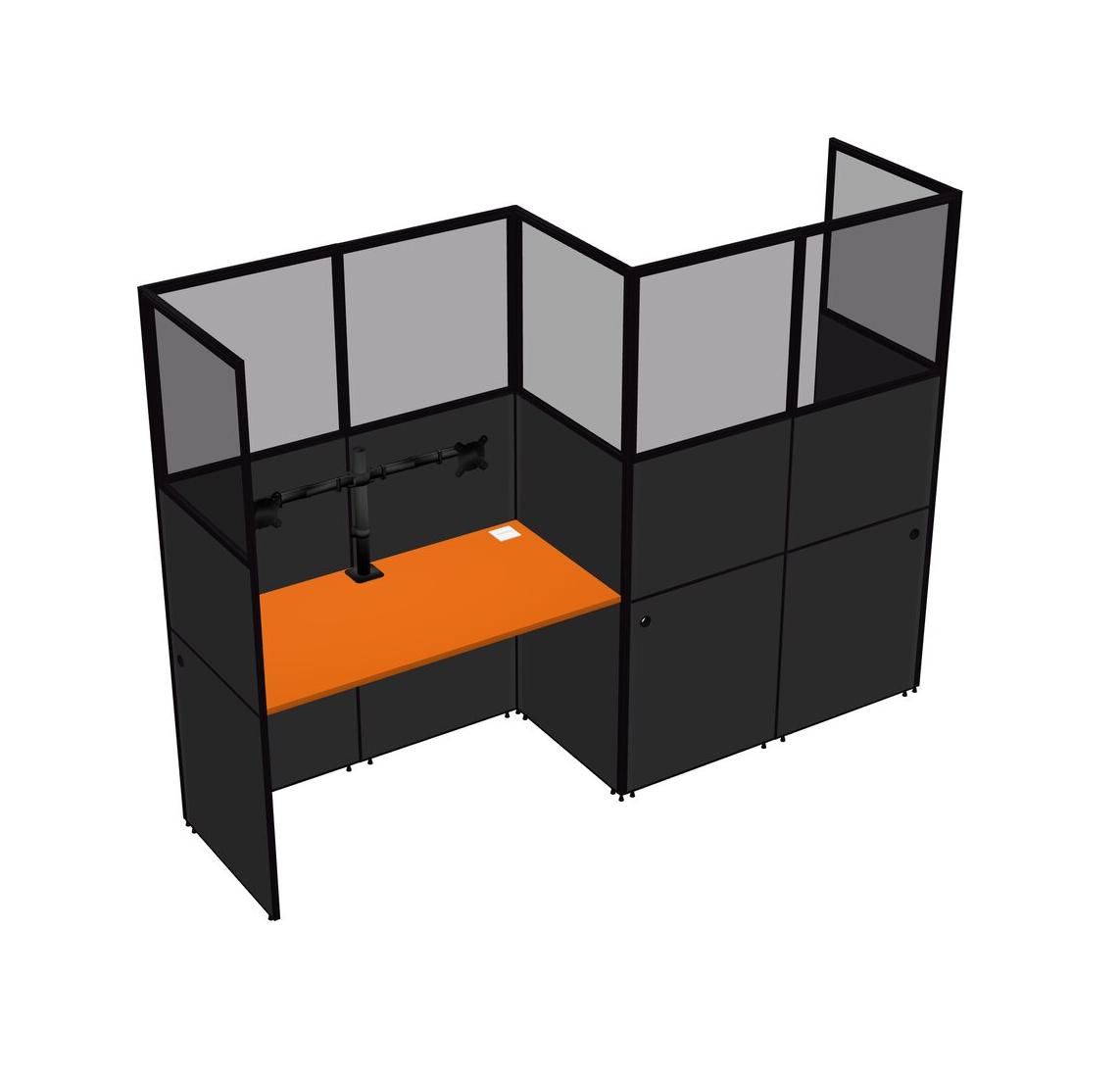 Orange Rectangular Cubicle Workstations For 2 - Zigzag Formation