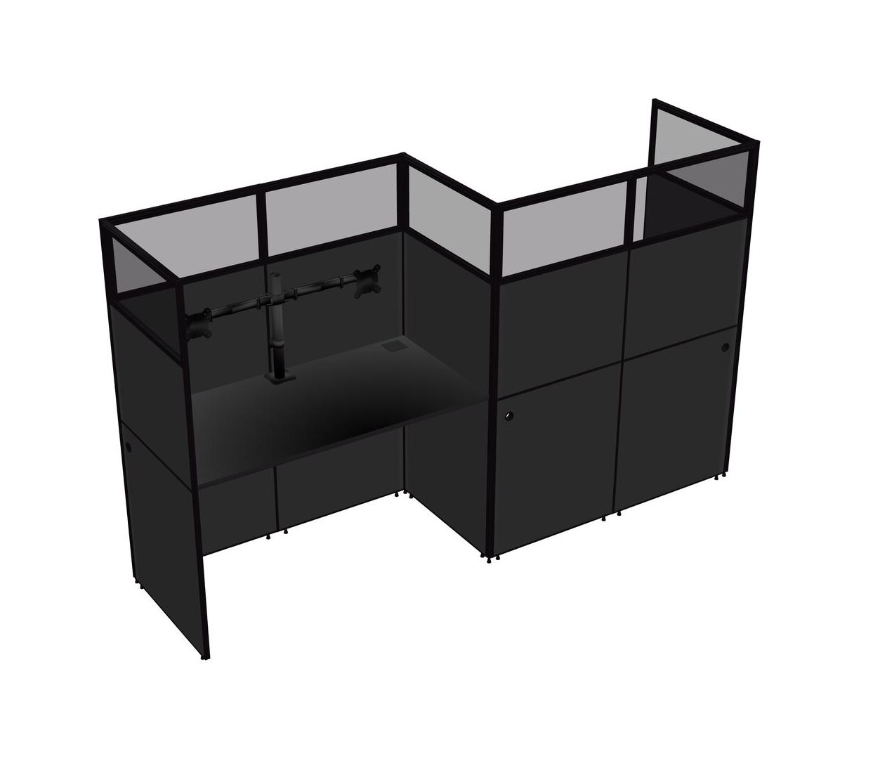 Black Rectangular Cubicle Workstations For 2 - Zigzag Formation