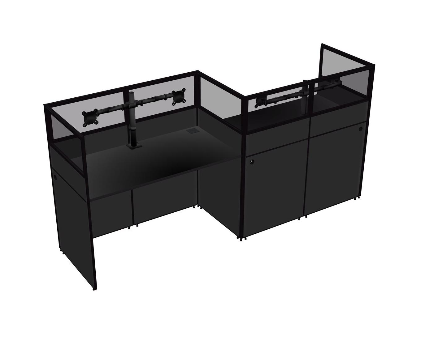 Black Rectangular Cubicle Workstations For 2 - Zigzag Formation