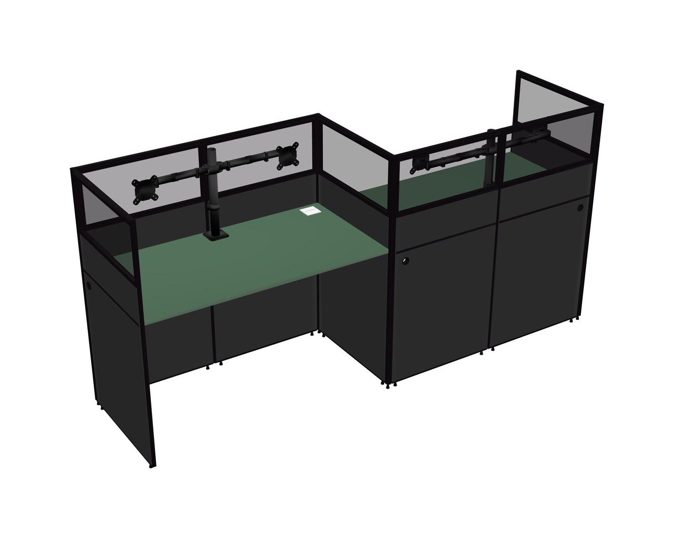 Green Rectangular Cubicle Workstations For 2 - Zigzag Formation