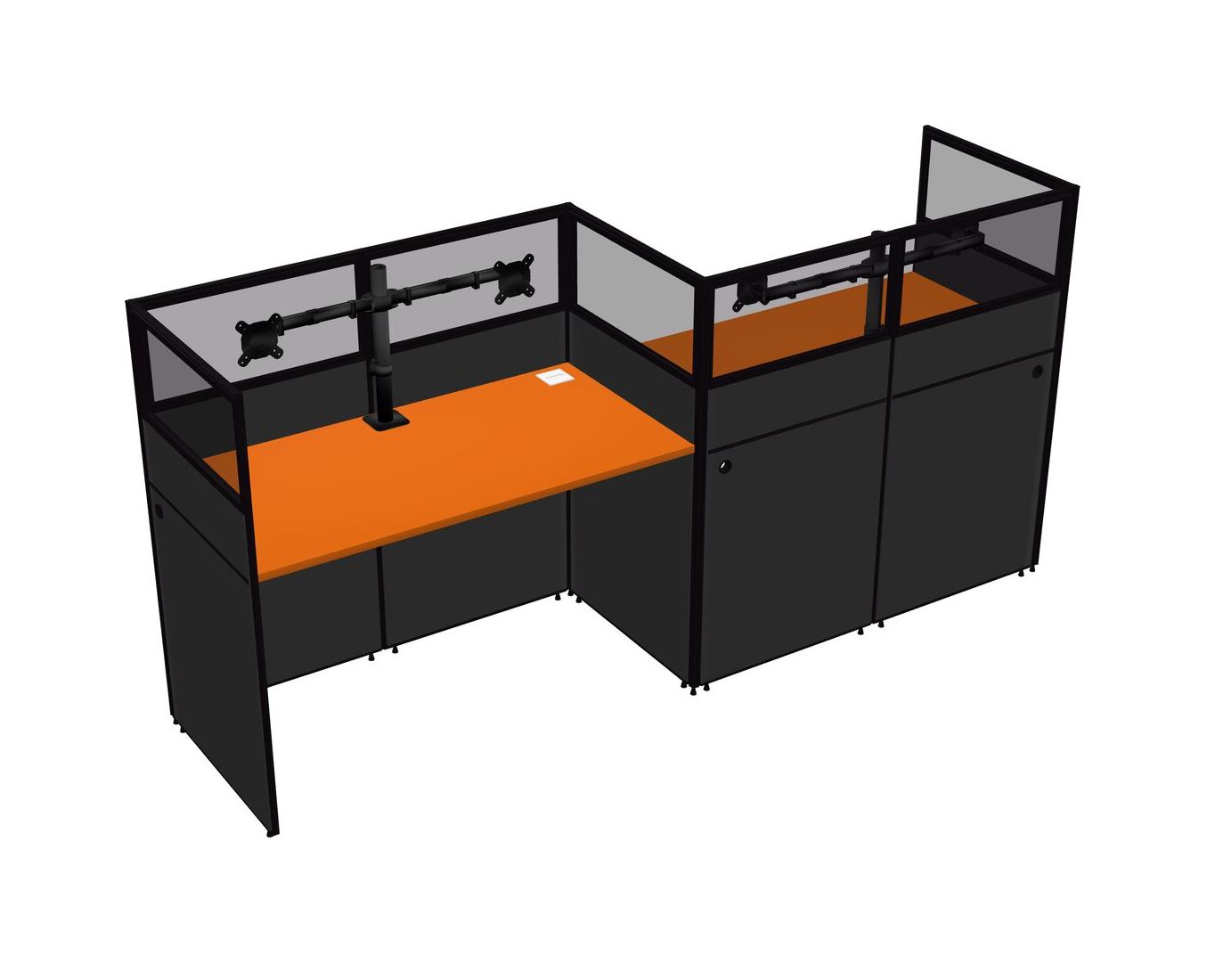 Orange Rectangular Cubicle Workstations For 2 - Zigzag Formation