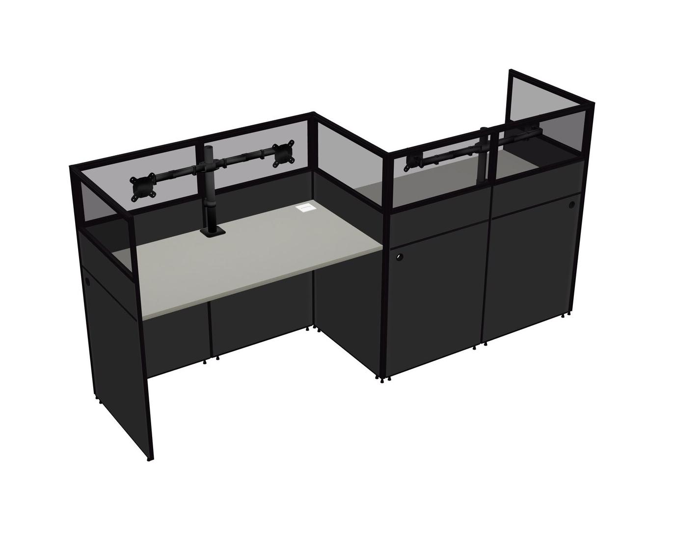 Grey Shadows Rectangular Cubicle Workstations For 2 - Zigzag Formation