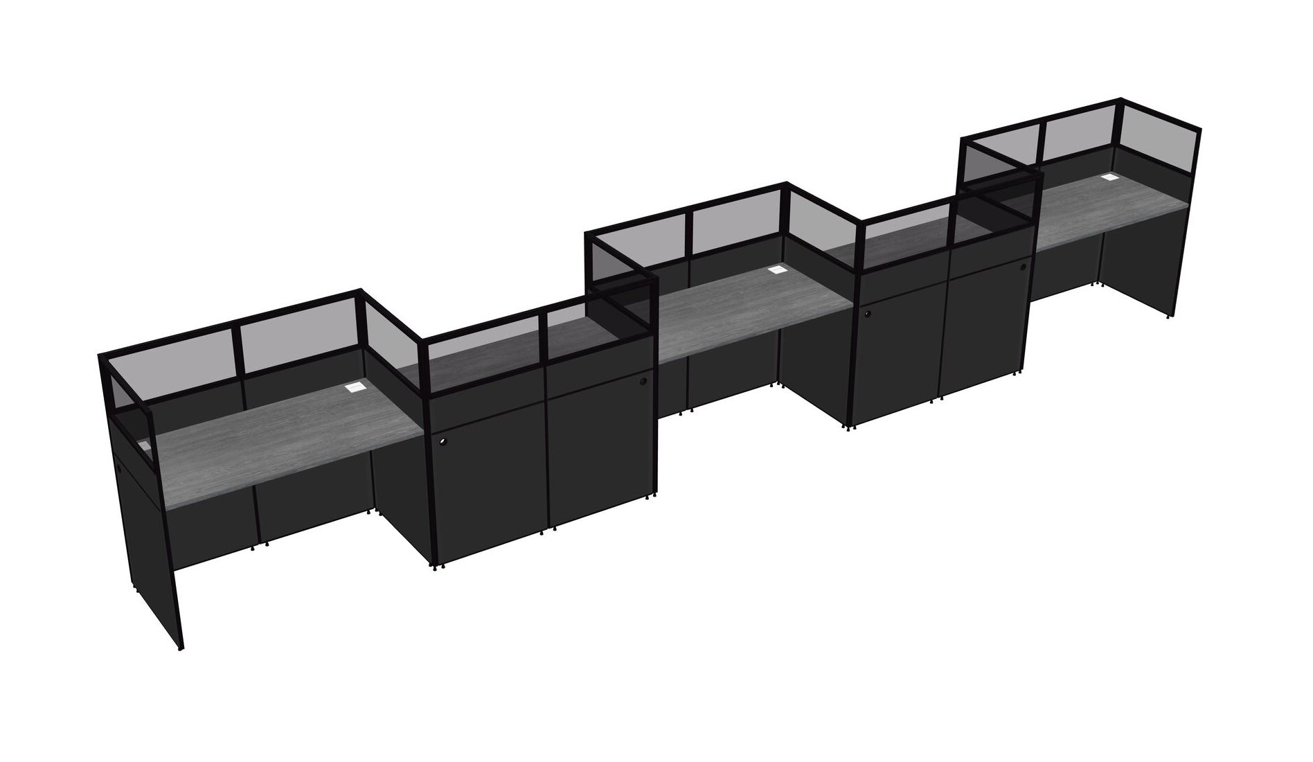 Grey Rectangular Cubicle Workstations For 5 - Zigzag Formation